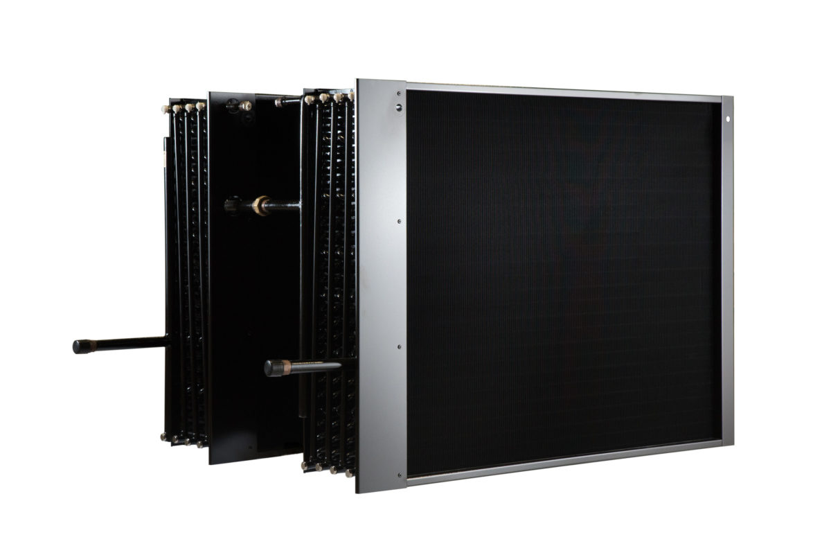 - Ausführung standardmäßig aus nahtlos gezogenen Kupferrohren und aufgepressten Aluminium-Lamellen im V2A Rahmen und Sammler aus Kupfer. Verwendung verschiedener Geometrien mit versetzter und fluchtender Rohranordnung. In der Regel ist keine Beschichtung empfohlen und erforderlich.